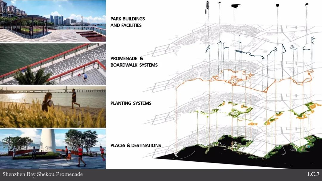 深圳灣濱海休閑帶的建設目標,是構筑一個形態完整、功能完善的生態體系──環深圳灣大公園系統和一個概念明晰的公共濱海地帶,實現人類與大自然的親密“連接”,在建設時序分為東西兩段公園。深圳灣休閑帶西段地處蛇口半島東南端,山海城格局鮮明,現代社區與老鎮街間或共生,空間資源明顯區別于已建成的東段公園。休閑帶西段建設,秉承深圳灣總體規劃建立的理論框架,強化場地尺度與岸線景觀特征,利用活力多“灣”的主題空間語言與景觀意向,豐富濱海帶岸線特征和與之相適應的濱水活動空間,與東段大開大合的空間節奏形成對比,各自表述灣區文化的不同取向,完成由已建成東段公園自然疏朗的景觀氛圍,逐漸過渡至城市魅力體驗。